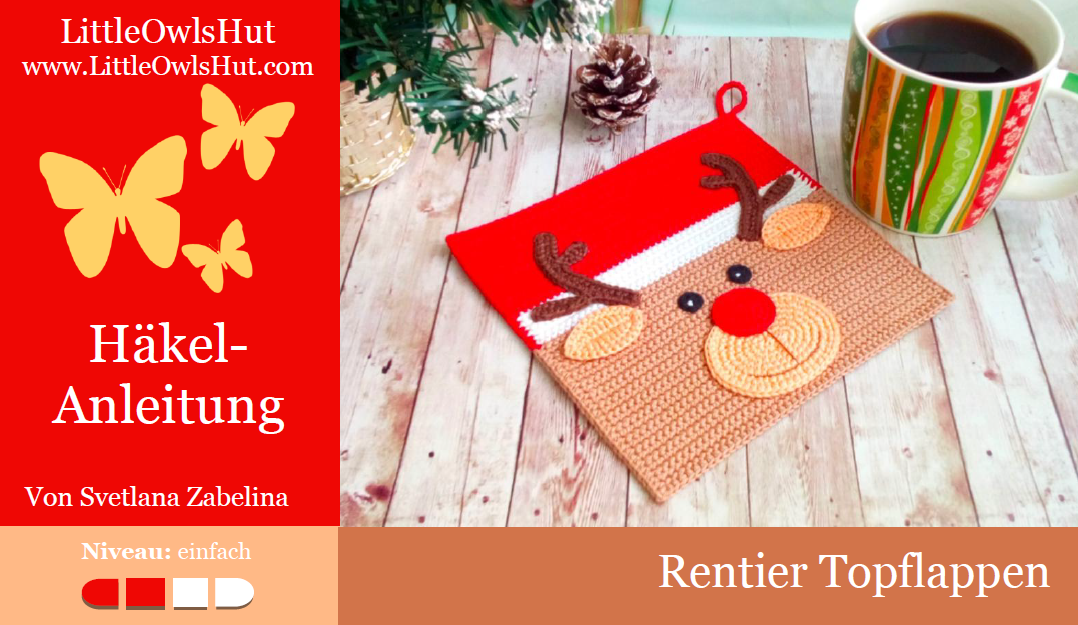 Größe: Mit dem von mir empfohlenen Garn ist der Topflappen ca. 16,5 x 16,5 cm groß
