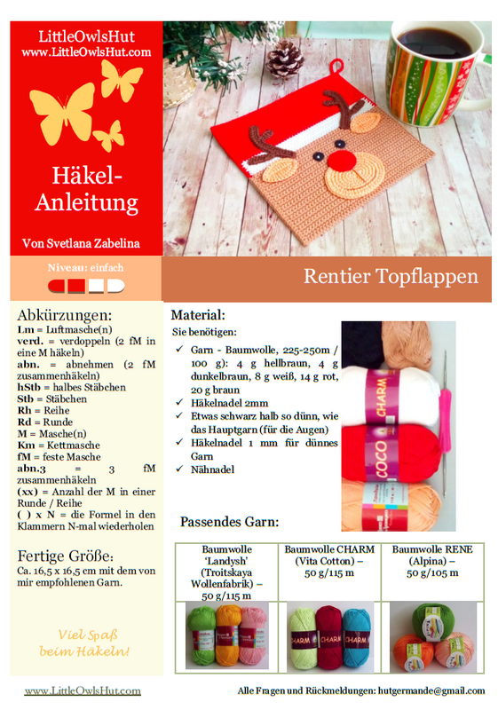 Sie dürfen Topflappen, die nach dieser Anleitung gehäkelt sind, verkaufen (lesen Sie bitte die Bedingungen in der Anleitung).
