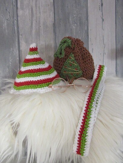 Darin beschrieben ist, wie Snorre, seine Mütze, sein Schal und sein Weihnachtssack gehäkelt wird.
