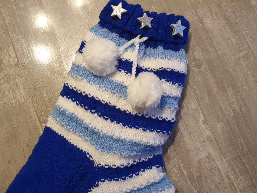 Diese Weihnachtssocke hab ich für meinen allerersten Urenkel gestrickt, der heuer sein erstes Weihnachtsfest feiert!