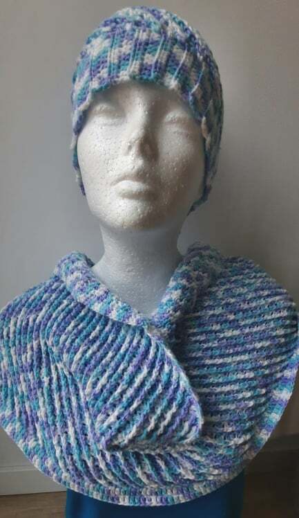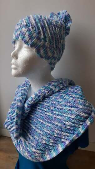 Du kaufst hier ein Anleitungsset für eine Mütze und einen passenden Loop. Das Muster ist sehr eingängig und besticht durch seine Einfachheit.