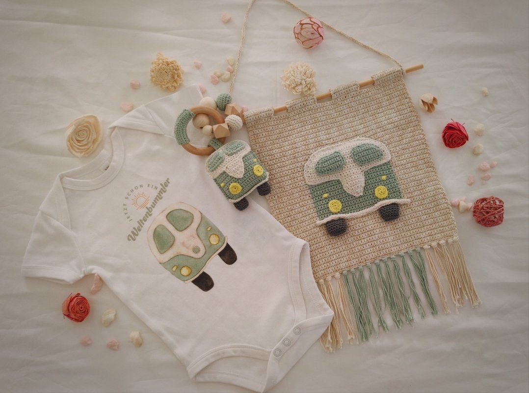 Ich habe euch ein Kombipaket aus meiner Anleitung Babyrassel Camper und Wandhänger Camper zusammengestellt.