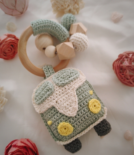 Die Babyrassel Camper ist ca. 10 cm groß.