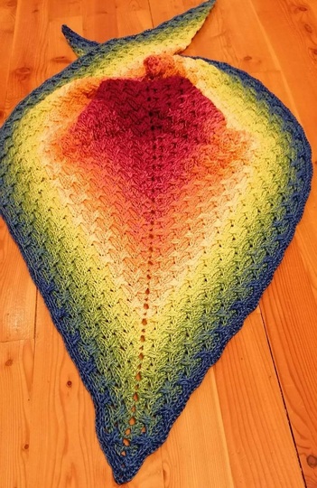 Das Tuch sollte mit einer halben Nadelstärke mehr, als ihr normalerweise benutzt, gehäkelt werden
