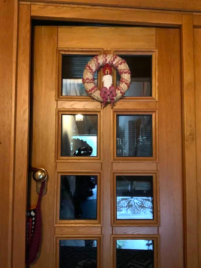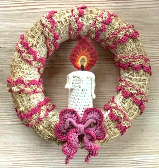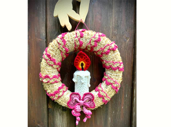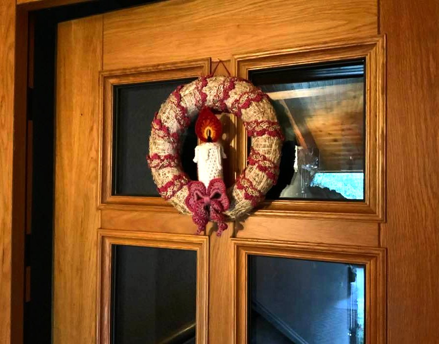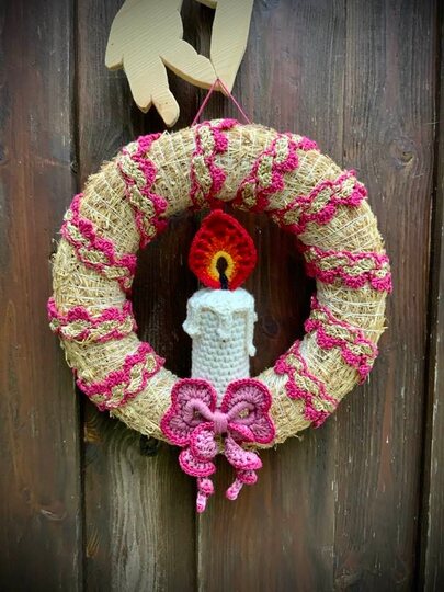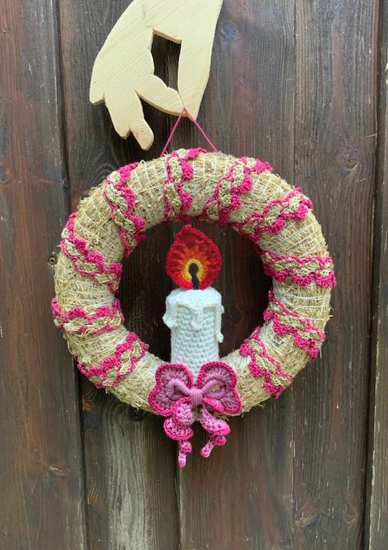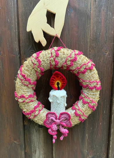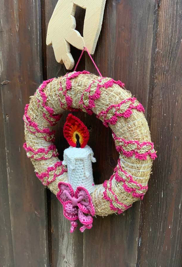 Der hübsche Türkranz mit Kerze und Schleife....ein feiner Schmuck für die Vorweihnachtszeit und auch schnell gehäkelt