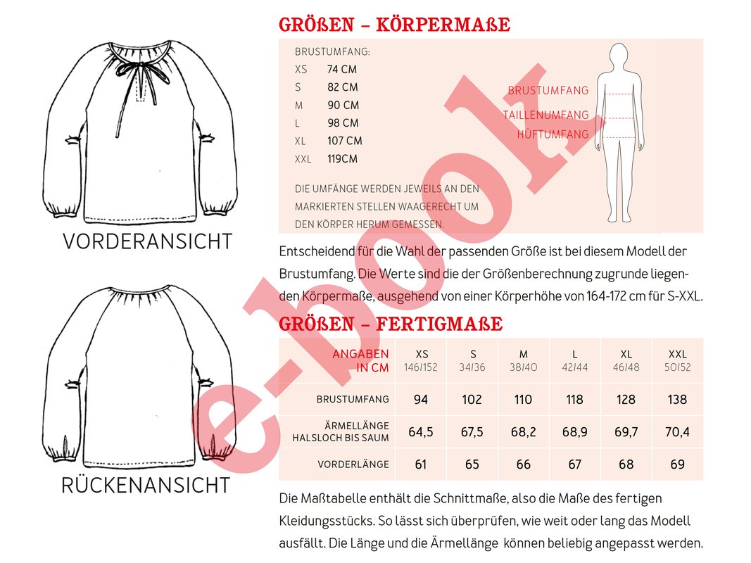 Umfang: Nähanleitung - 14 Seiten , Schnittmuster - 18 Seiten (die zusammengeklebt werden müssen), Plotterdatei mit dem Bogen in Originalgröße