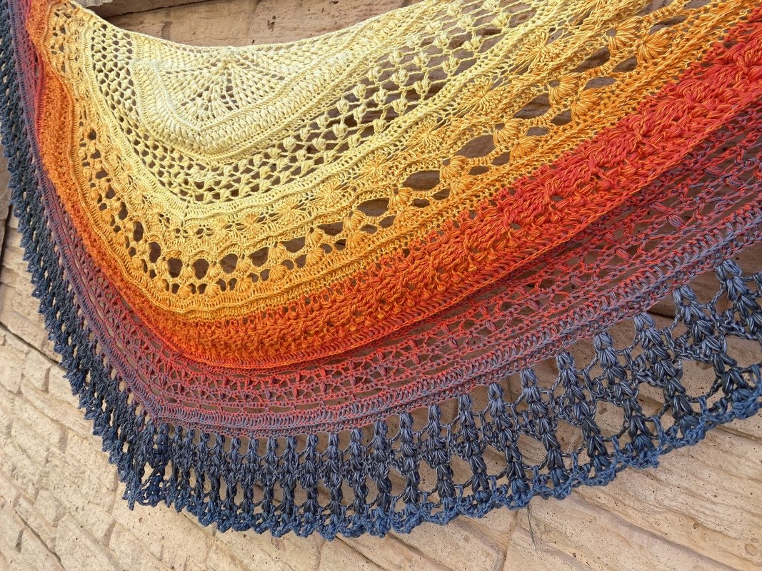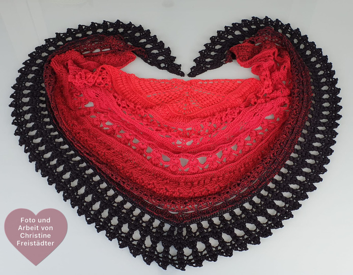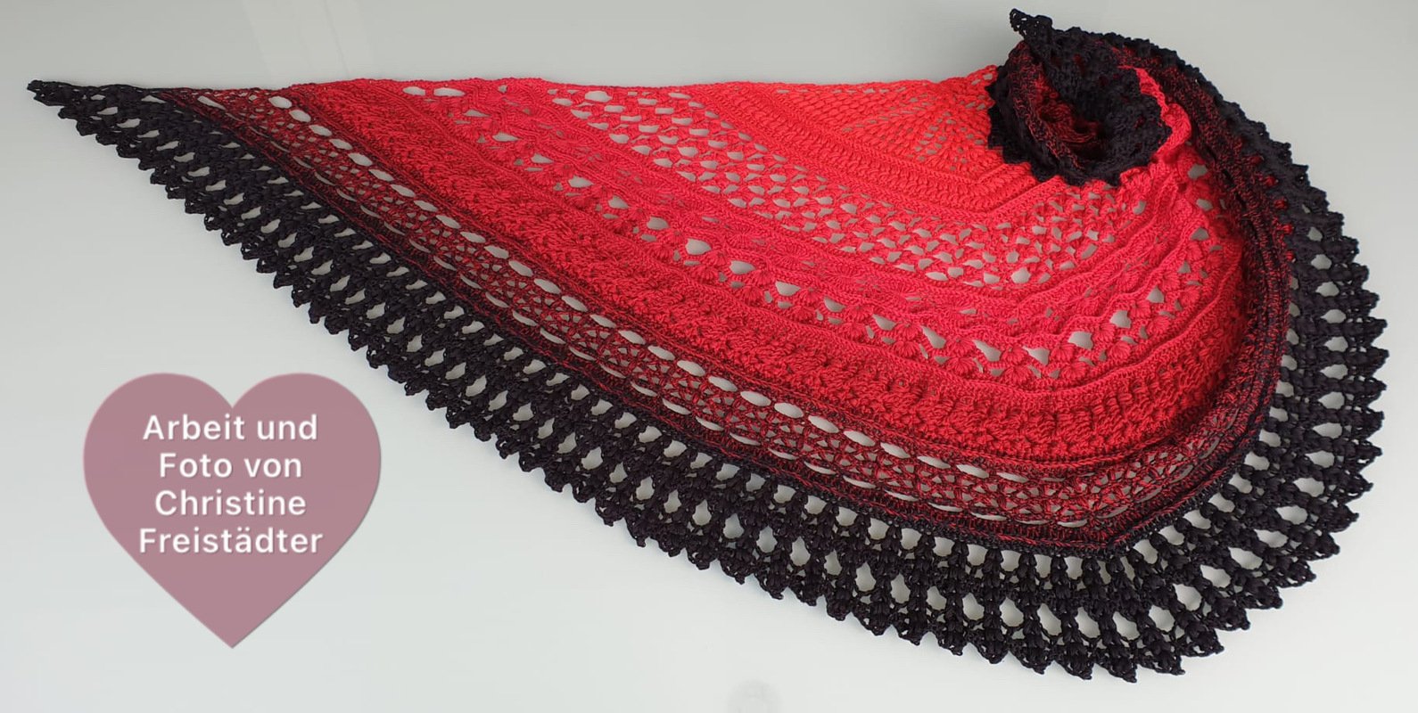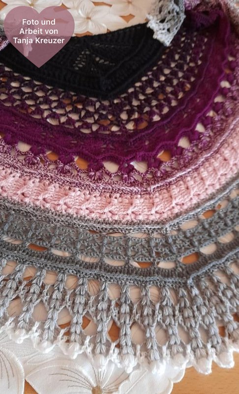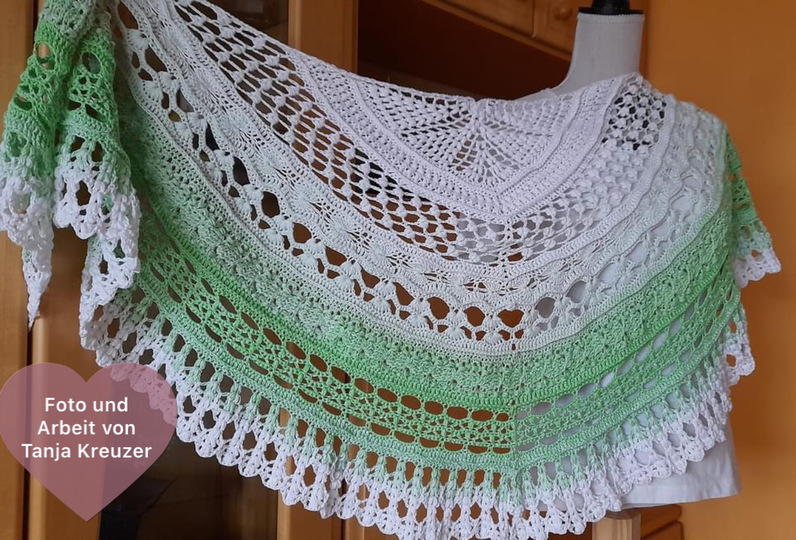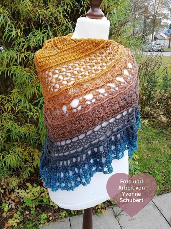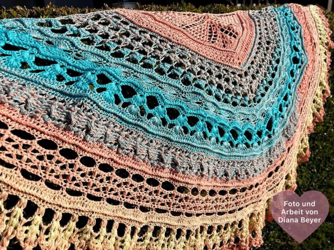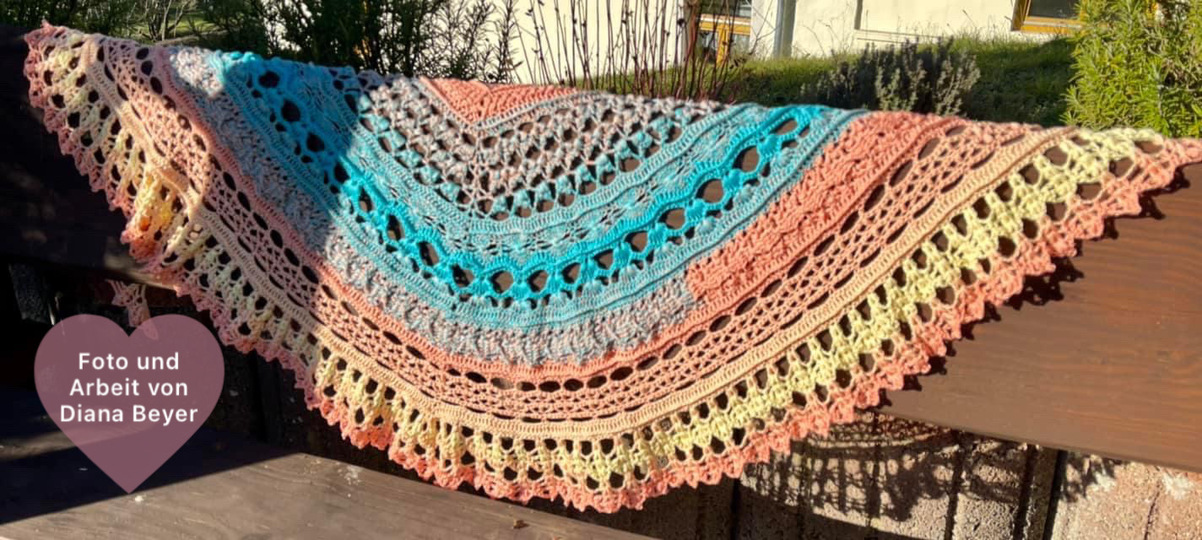 Bitte denke daran, dass die Größe des Tuches auch immer sehr stark von deinem Häkelstil und der Garnstärke abhängt und es daher Abweichungen geben kann.