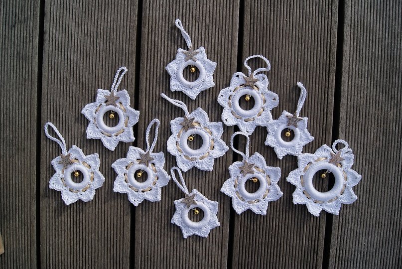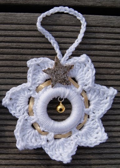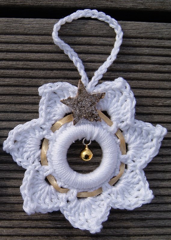 Weiteres Zubehör: Vorhangringe aus Holz oder Plastik (egal welche Größe) – ich habe 50 mm Durchmesser verwendet, Goldbändchen 3 – 5 mm Breite, kleines Goldglöckchen, Dekostern zum Aufkleben