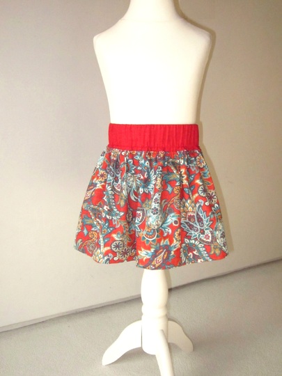Gekräuselter Mädchenrock mit Gummizug-Bund, leicht anzuziehen und einfach in der Verarbeitung, weil man keinen Reißverschluss braucht. Das Modell ist für Baumwollstoffe genauso wie für festlichen Taft geeignet, man kann auch Streifen oder Karos verwenden, weil der Rock gerade geschnitten ist, ein allround-Talent. Das Musterteil ist mit farblich abgesetztem Bund genäht, Sie können aber genauso alles aus einem Stoff verarbeiten.
