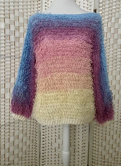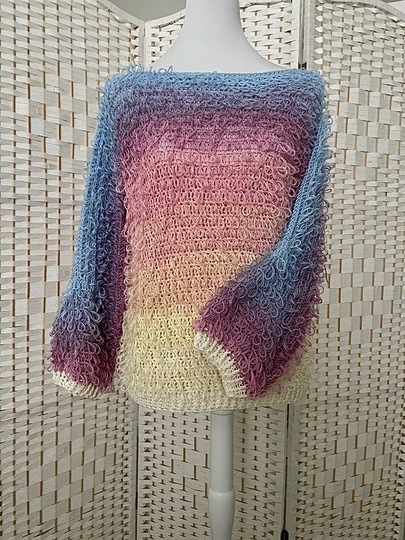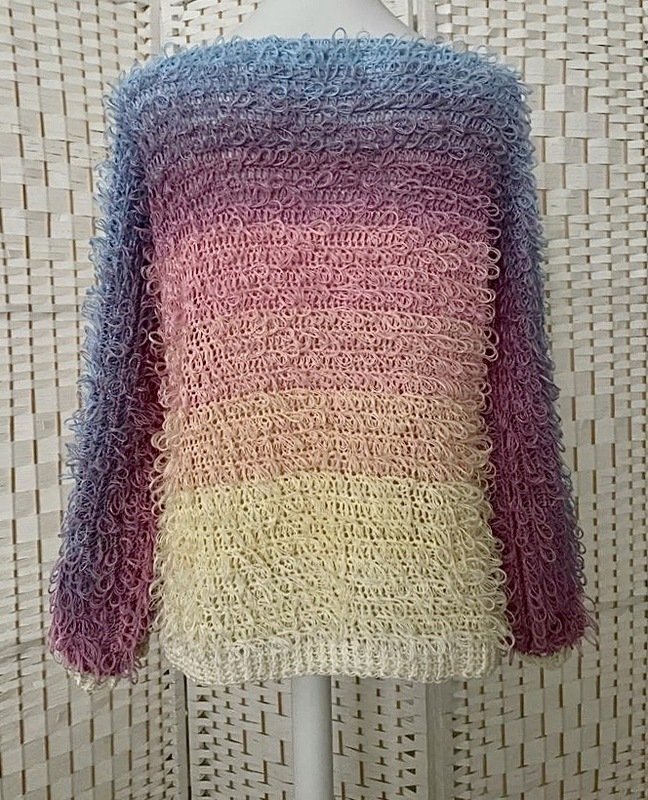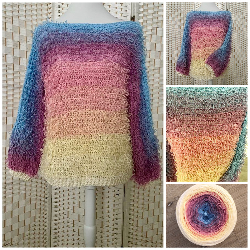 Je nach Garnauswahl, kann man den Pulli sowohl an kälteren als auch an warmen Tagen tragen. Besonders gut eignen sich hier Farbverlaufsgarne/ Bobbel, weil sie mit einem Rutsch von der Häkelnadel hüpfen.