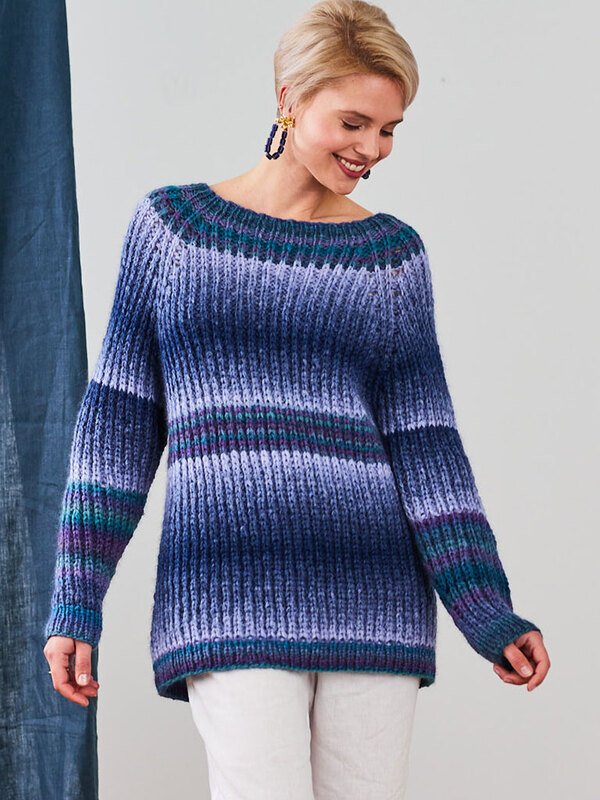Das Garn "Woolly Hugs SCAP" hat einen ganz besonderen Farbverlauf den man sonst nirgends bekommt. Ein kleines Stück ist bunt, der Rest verläuft in einem langen Verlauf aus. Alle Knäule sind gleich, so das man immer wieder ein neues Knäuel ansetzen kann.