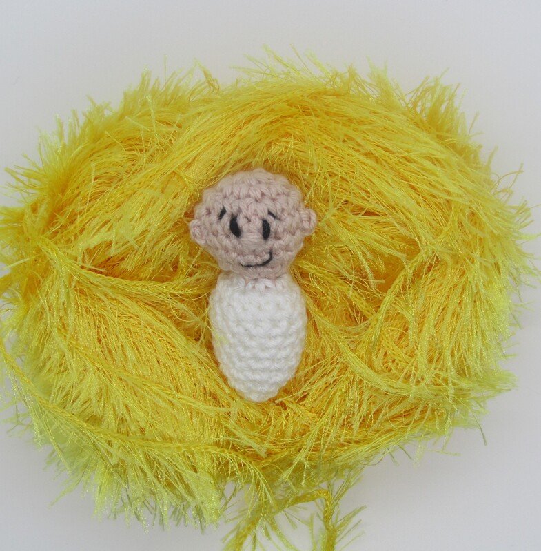 Die Fingerpuppen werden mit dem Baumwollgarn ( LL125/50) und einer Häkelnadel No.2,5 ca. 11 cm groß,