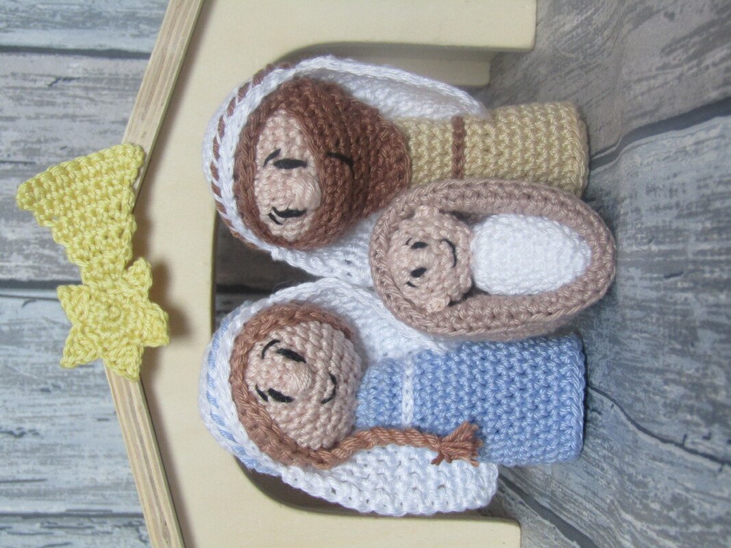 In der Anleitung wird ausführlich beschrieben, wie man Maria, Josef und das Jesuskind häkelt. Sie umfasst 21 Seiten und ist Dank der vielen Detailfotos ( insgesamt 32 Fotos) auch für Anfänger geeignet !