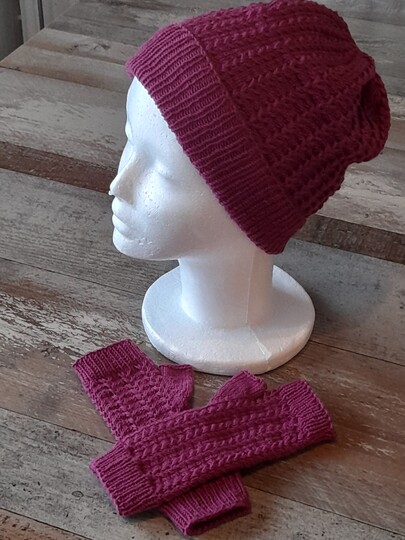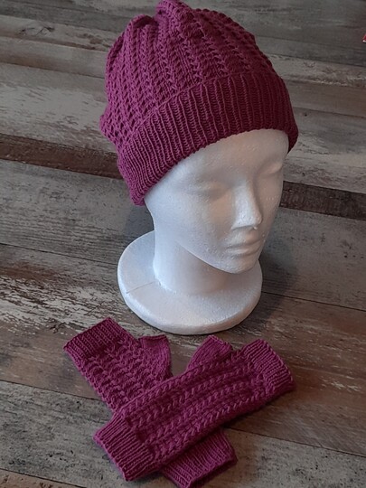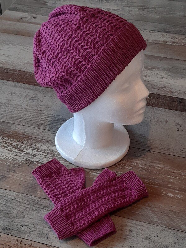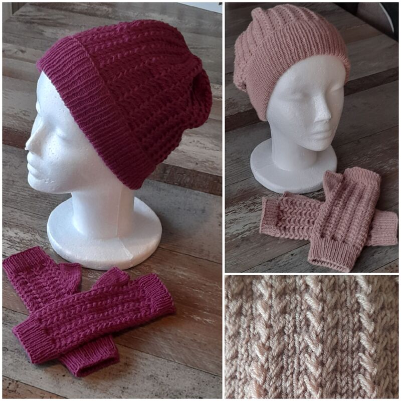 Das Set kann in den Größen S/M und L/XL gestrickt werden, das entspricht einem Kopfumfang von ca. 53/54 – 57/58cm und einem Handumfang von 16/17 – 20/21cm.