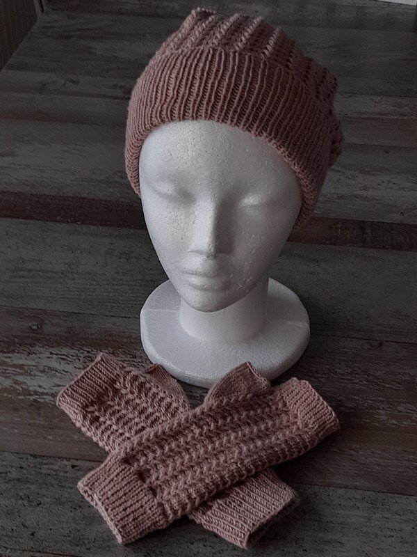 Mütze und Armstulpen, eine Kombination von der Frau im Winter nicht genug haben kann. So ein Set hält nicht nur warm, sondern sieht auch noch chic aus. Diesmal habe ich die Mütze als Beanie gearbeitet, mit einem Muster aus Hebe - und überkreuzten Maschen, das sich natürlich auch bei den Stulpen findet. Da es beim Tragen nicht stört, habe ich es rundherum gearbeitet. Die Stulpen sind außerdem mit Daumenkeil.