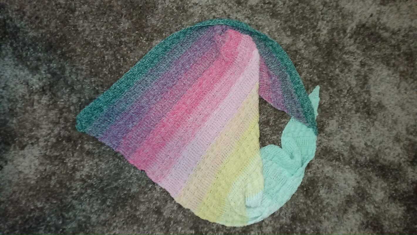 Mit einem 1300m Bobbel bekommt ihr ein ca 1,35m * 1m Tuch