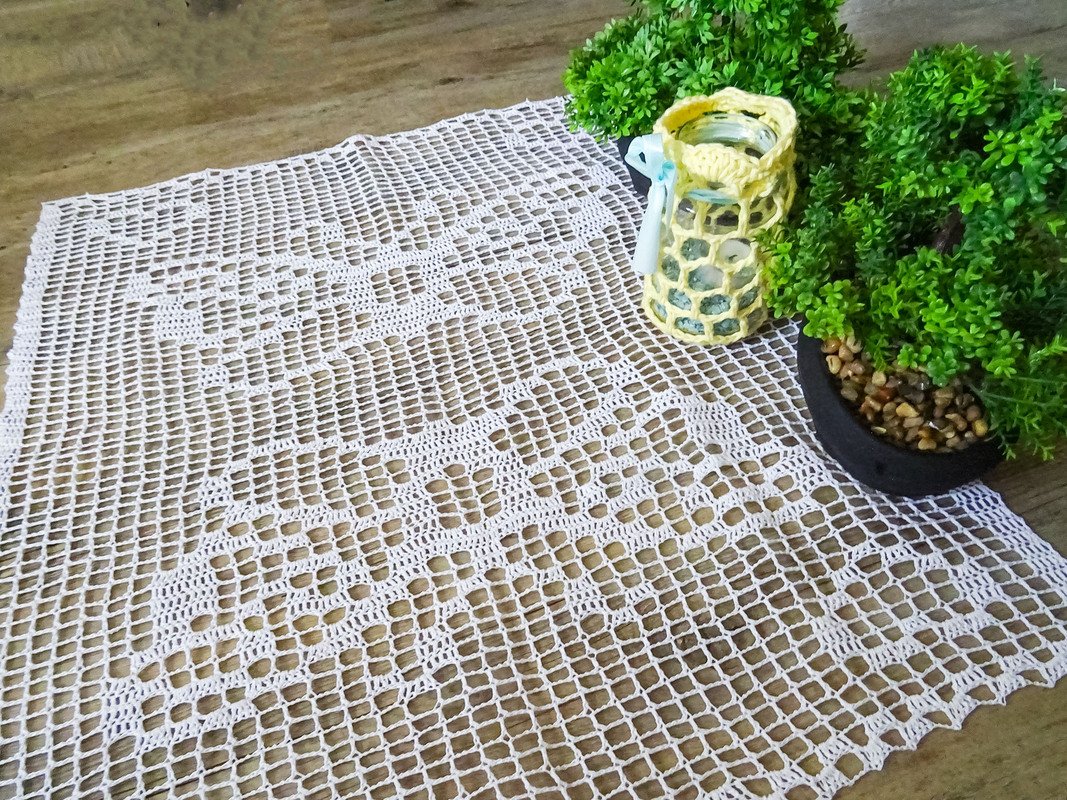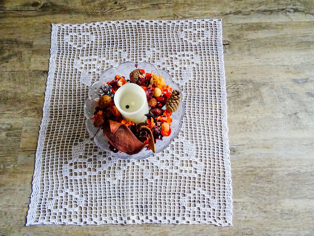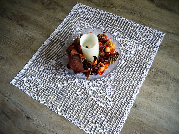 Der Tischläufer ist variabel und lässt sich in Länge und Breite endlos häkeln.