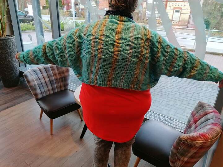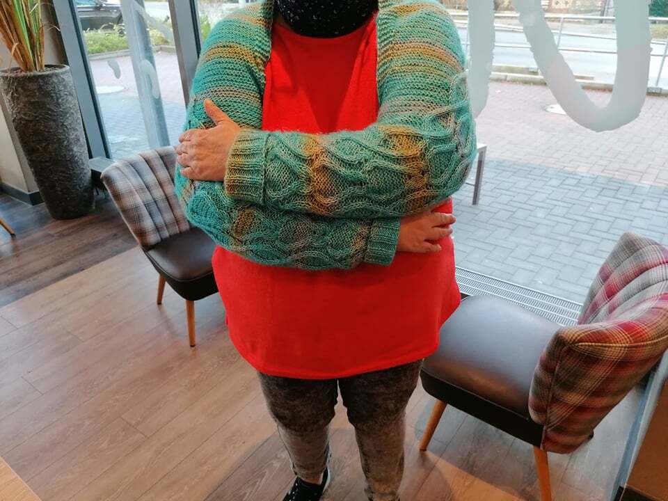 Dieser Ärmelschal ist ein toller Begleiter für das ganze Jahr. Man kann ihn auf verschiedene Weisen tragen und so jedes Top oder Shirt toll aufpeppen. Als Ärmelschal angezogen wärmt er nicht nur den Hals, sondern auch die Schultern. Nur einseitig angezogen und lässig über die Schulter geschlagen mit einem gewissen Chic oder als normaler Schal zur Jacke oder Weste.... oder für Menschen wie mich, ein Sweatshirt, Ärmelschal und Steppweste und fertig ist das Outfit für den kühleren Tag.