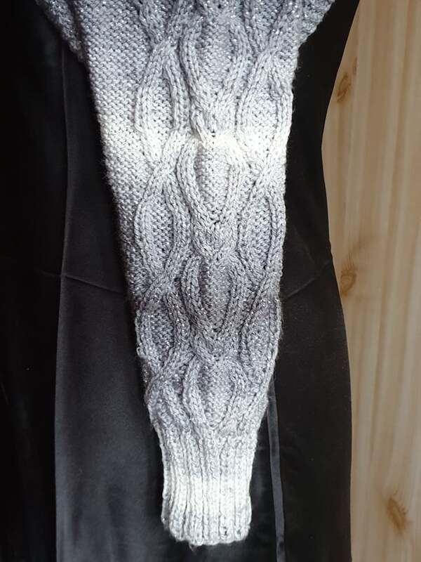 Der Ärmelschal wird von Handgelenk zu Handgelenk gestrickt Es wird also beim ersten Bündchen begonnen, der erste Ärmel wird gestrickt und wechselt dann in das Schal-Teil. Der wird dann so lang gestrickt, wie jeder ihn haben möchte. Dann geht es wieder über in den zweiten Ärmel bis hin zum zweiten Bündchen.