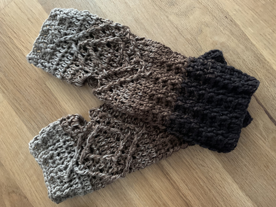 für Mütze 140-150gr, Stulpen 60-70gr, Schal 240-250gr