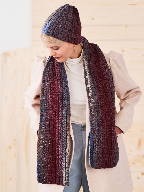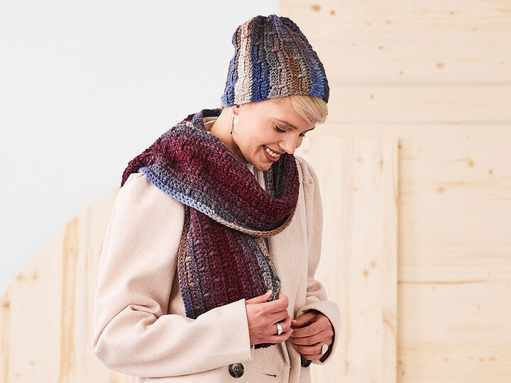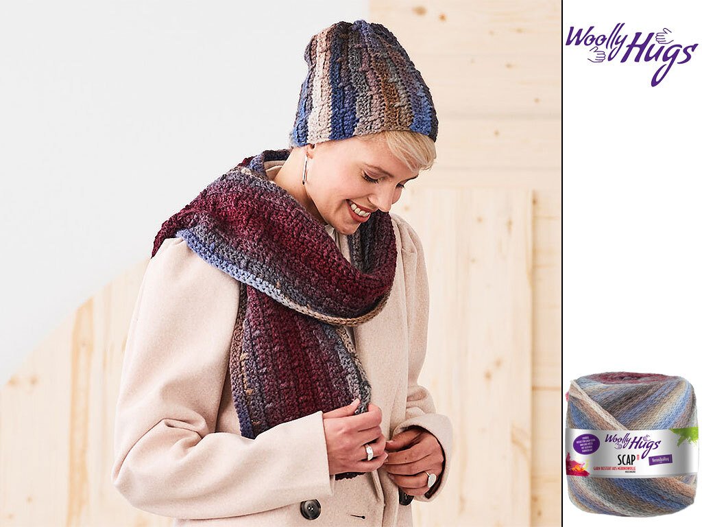 Diese schönen langen streifen im Schal entstehen ganz von alleine durch die rafinierte Färbung der Wooly Hugs Scap. Das Garn "Woolly Hugs SCAP" hat einen ganz besonderen Farbverlauf den man sonst nirgends bekommt. Ein kleines Stück ist bunt, der Rest verläuft in einem langen Verlauf aus. Alle Knäule sind gleich, so das man immer wieder ein neues Knäuel ansetzen kann.