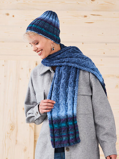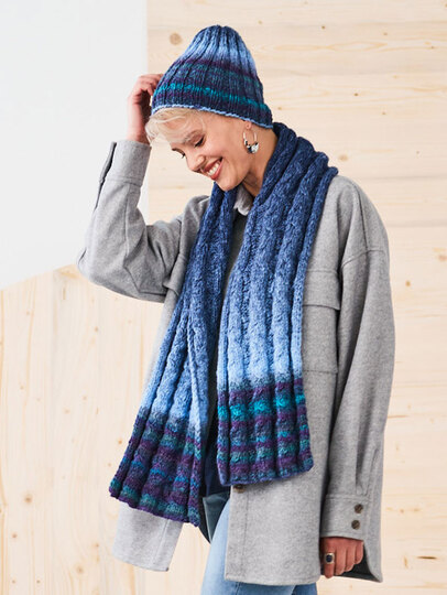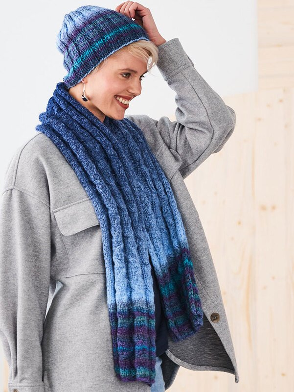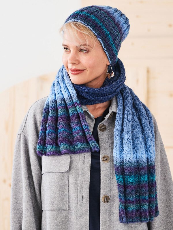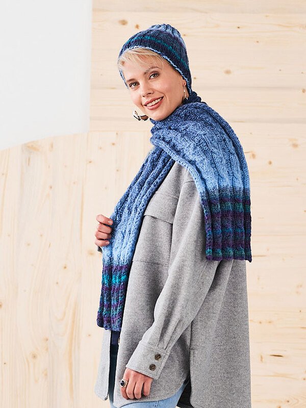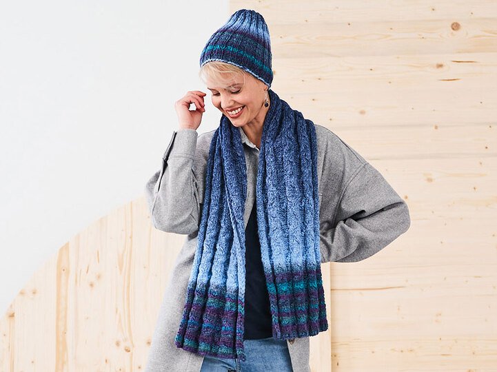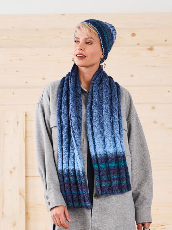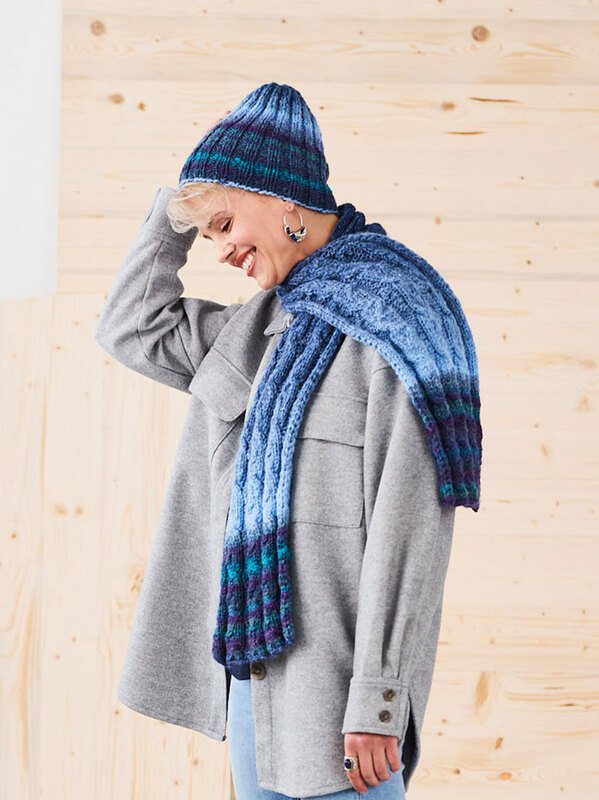Mit nur 1 Knäuel bekommt ihr diesen schöne Schal + Mütze gefertigt.