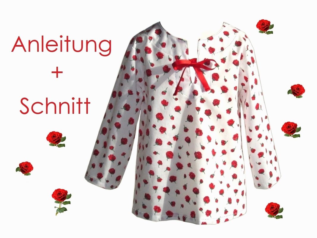 Schöne Langarm-Bluse für Mädchen, einfach zum Reinschlüpfen. Die Silhouette ist etwas A-förmig, vorne hat die Tunika einen Schlitz mit Schleife zum Zubinden, dadurch passt der Ausschnitt leicht über den Kopf.