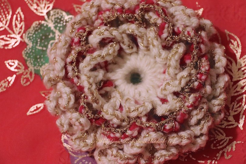 Pro Blüte brauchst du 18 g von einem Mischgarn, auch Reste Wolle