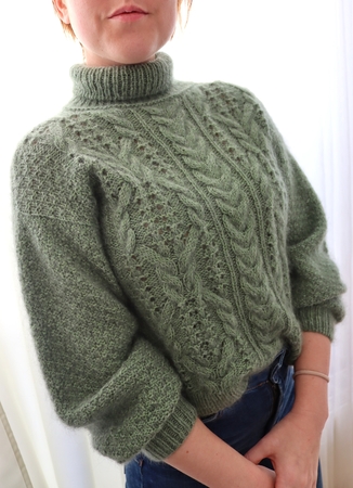 Der Sweater wird am Stück, von unten nach oben gestrickt. Die Ärmel werden aus der Naht heraus gestrickt und durch Abnahmen etwas enger geformt.