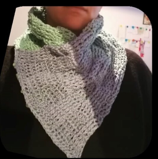 Er wurde komplett mit der S-Schlaufe gearbeitet, damit er schön dick und kuschelig wird.