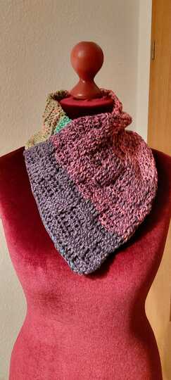 Hier könnt Ihr die Anleitung zum Kragenschal "mahana" erwerben, nicht das fertige Häkelstück.
