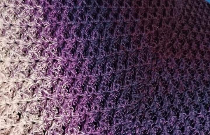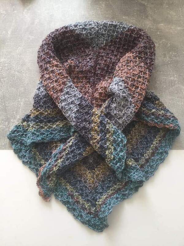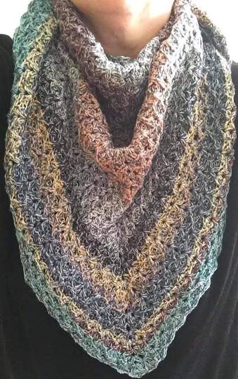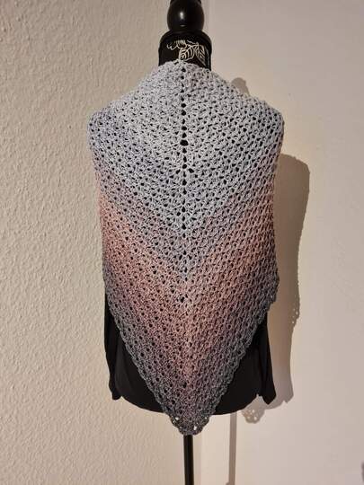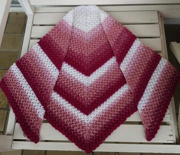 Die kostenlose Häkelanleitung für das Dreieckstuch Christin beschreibt ein interessantes Muster, das von beiden Seiten getragen werden kann. Es gibt also eigentlich keine Vorder- und Rückseite, da beide Seiten schön aussehen. Das Muster ist sehr dicht, es wird also eher ein wärmendes Tuch, dass natürlich auch als Schal um den Hals getragen werden kann. Durch die Reliefstäbchen hat es eine interessante Struktur und fühlt sich weich an.