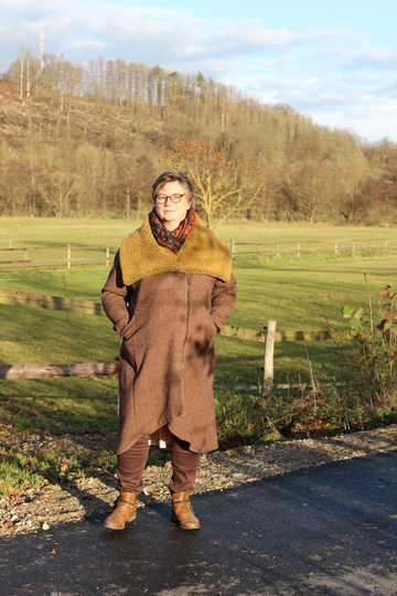 Mit Santini hast Du ein eBook für einen wunderschön taillierten Raglanmantel mit asymmetrischem Saum (vokuhila), der mit einem Reißverschluss oder Knöpfen asymmetrisch verschlossen wird.