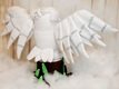 Ich arbeite hauptsächlich mit Baumwollgarn von Carina (vergleichbar mit Catania) und mit einer NS von 2.0.Unter diesen Vorrausetzungen wird Eurelia mit Stamm ca. 30-32cm groß und hat eine Flügelspannweite von ca. 60 cm. Du kannst auch jedes andere Baumwollgarn mit einer Lauflänge von 125m bei 50 gr verwenden oder auch deine Lieblingswolle.Die Größe kann sich dann ändern.