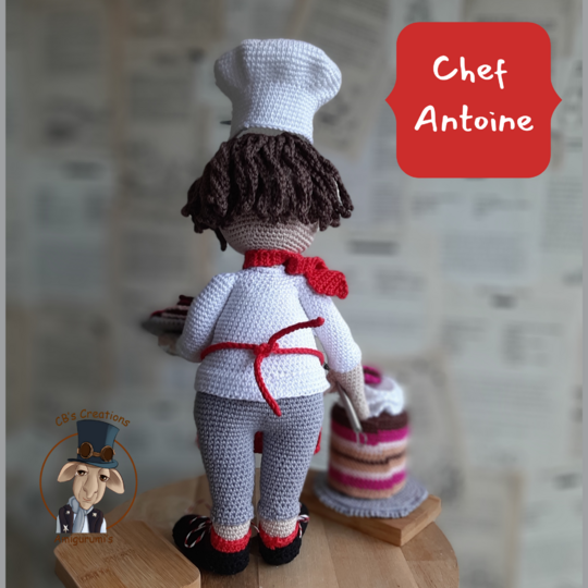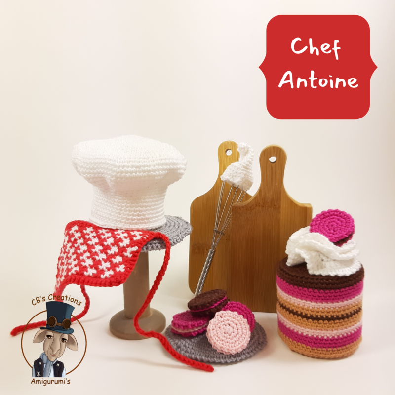 Mit diesem PDF-Muster können Sie Chef Antoine selbst häkeln! Diese 14-seitige PDF enthält detaillierte Häkelanleitungen, die mit Fotos illustriert werden, einschließlich klarer Informationen über die verwendeten Materialien und Abkürzungen.