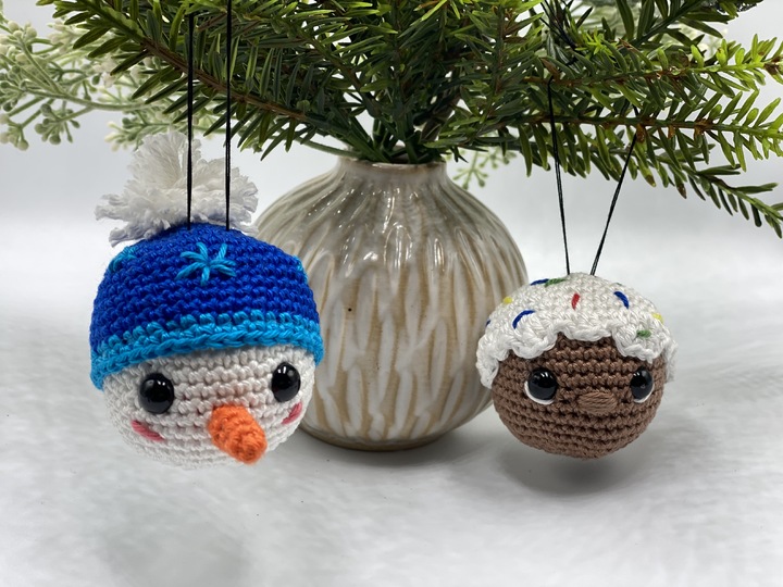 Mit dieser Anleitung kannst du sehr einfach diese beiden süßen Weihnachtskugeln häkeln.