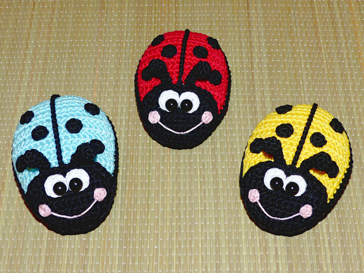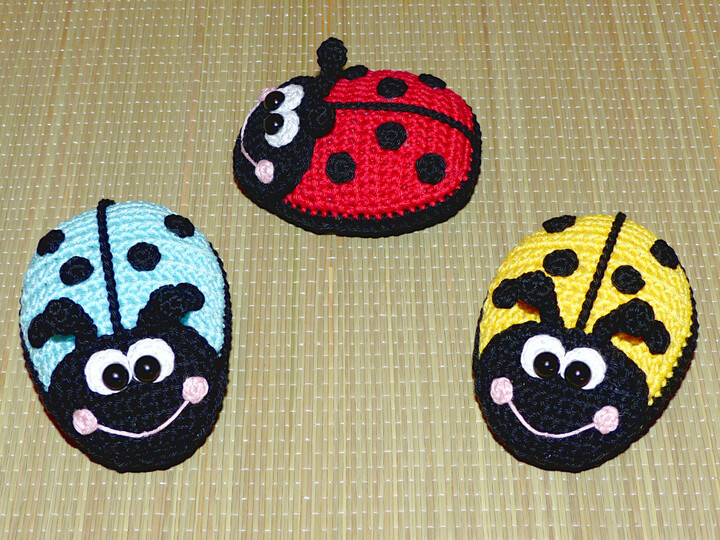 Je nach Garn- und Häkelnadelstärke variiert die Größe von den Marienkäfern.