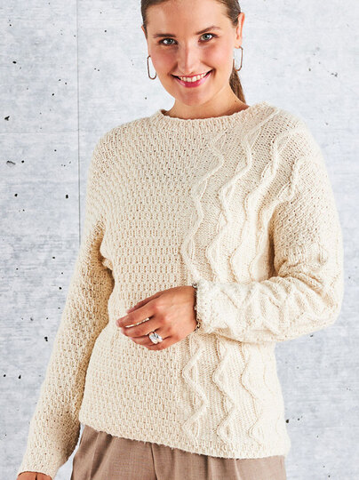 Dieser edle Pulli ist genau das Richtige für kalte Wintertage. Stellt Euch vor, draussen fällt Schnee, ihr sitzt mit einem heißen Tee und diesem schönen warmen Pulli am Kamin und strickt einen zweiten aus diesem herrlichen Garn. Denn eins weiß ich, wer mit diesem Garn kuschelt, der muss noch mehr davon haben.