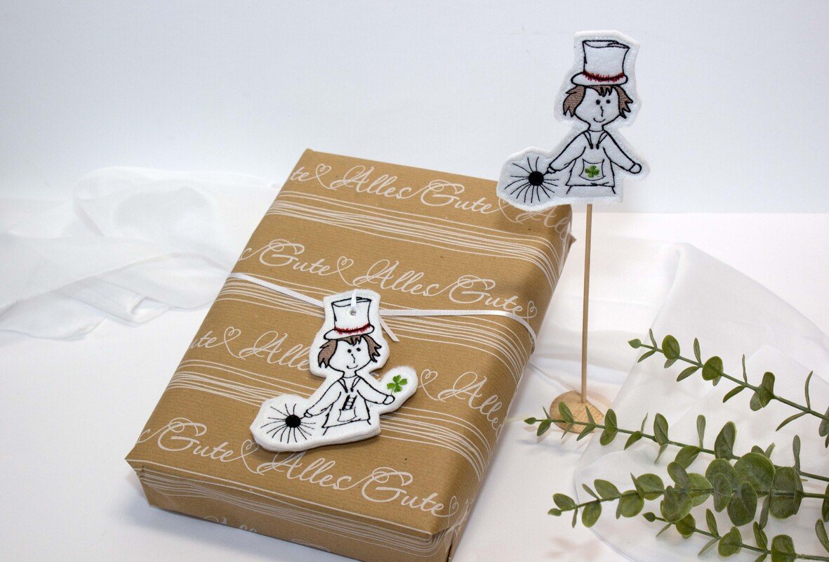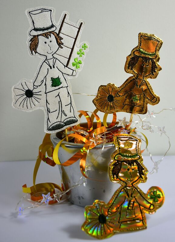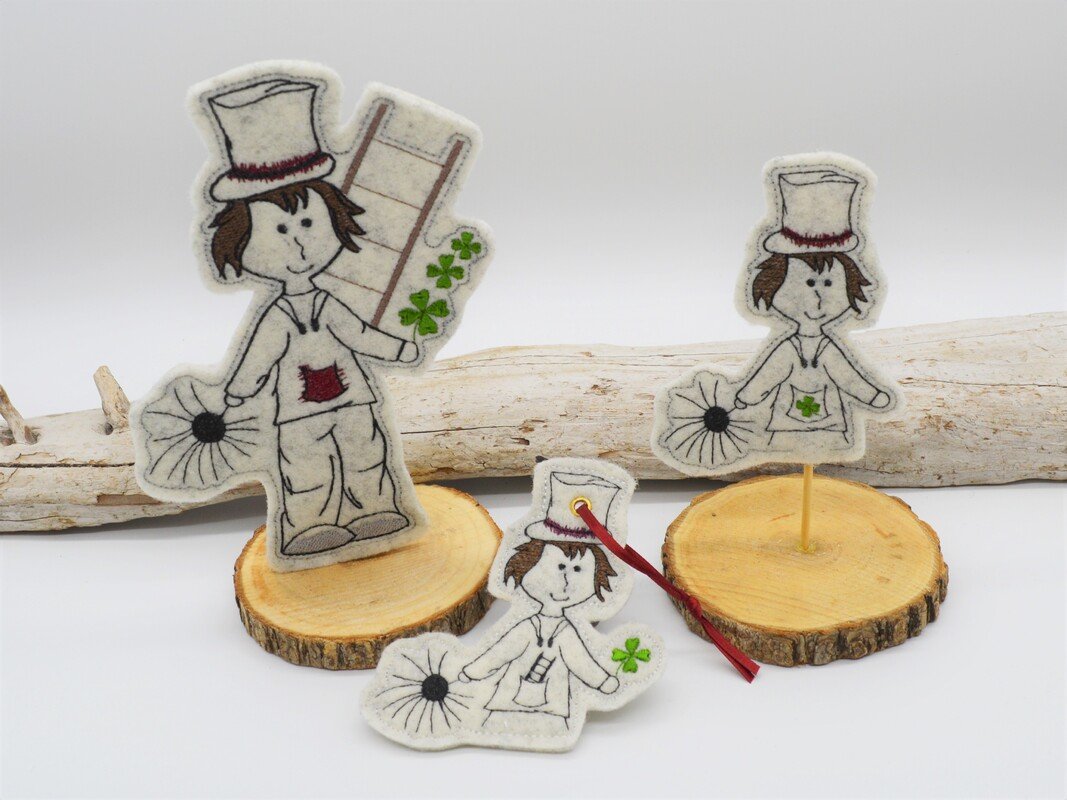 Schornsteinfeger als Deko in der Weihnachtszeit! Gestickt werden sie als Anhänger oder als Stabstickdatei, das heißt, sie können auf einen Holzspieß aufgespießt und als Deko im Blumentopf verwendet werden!
