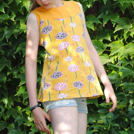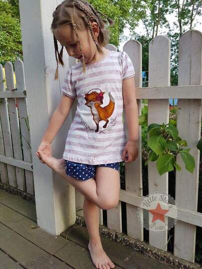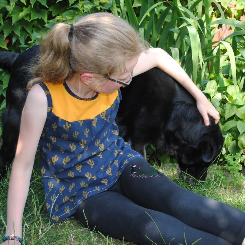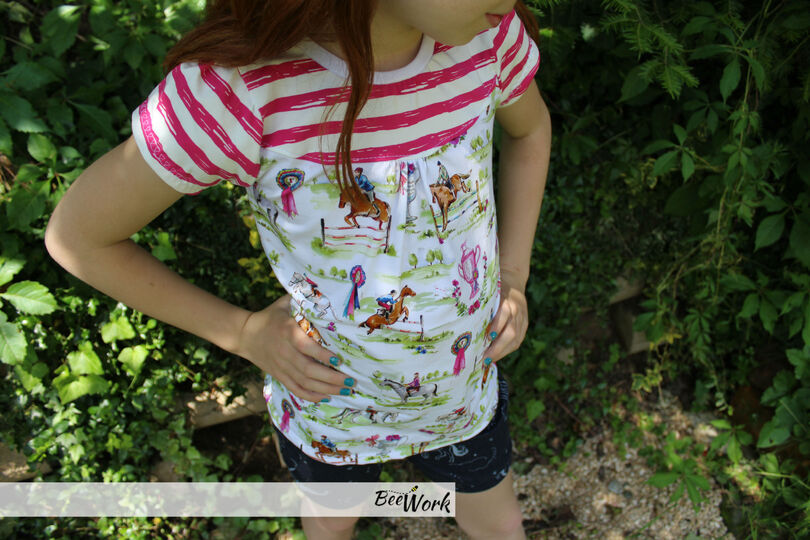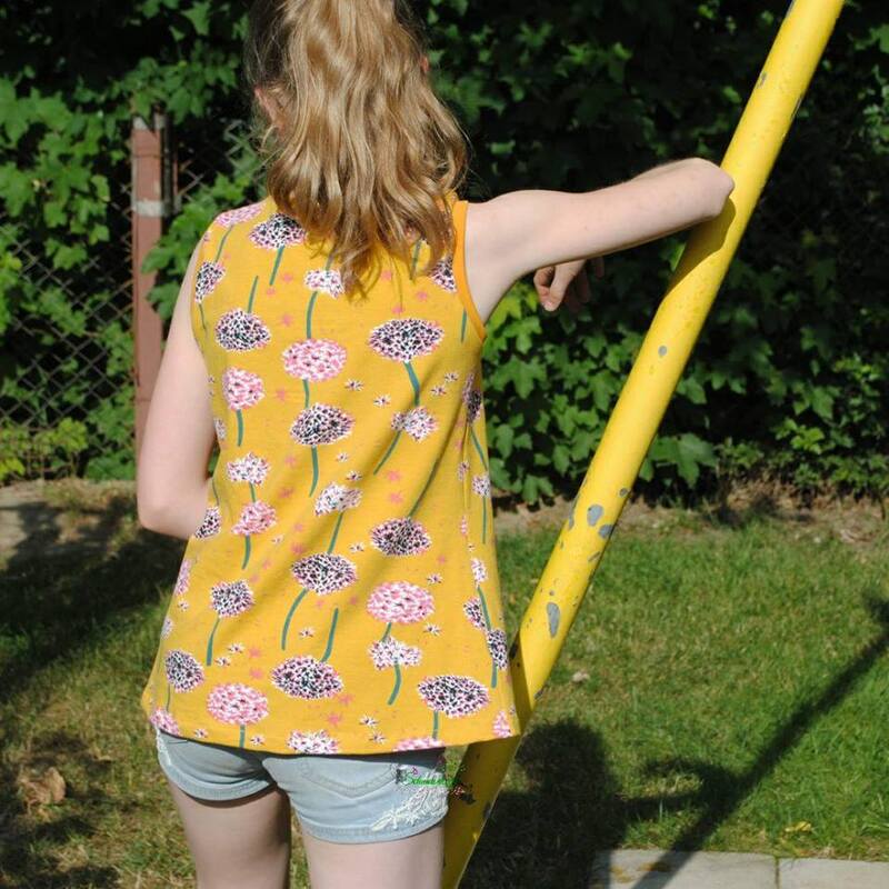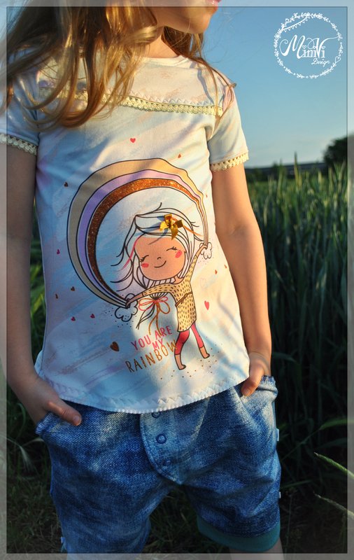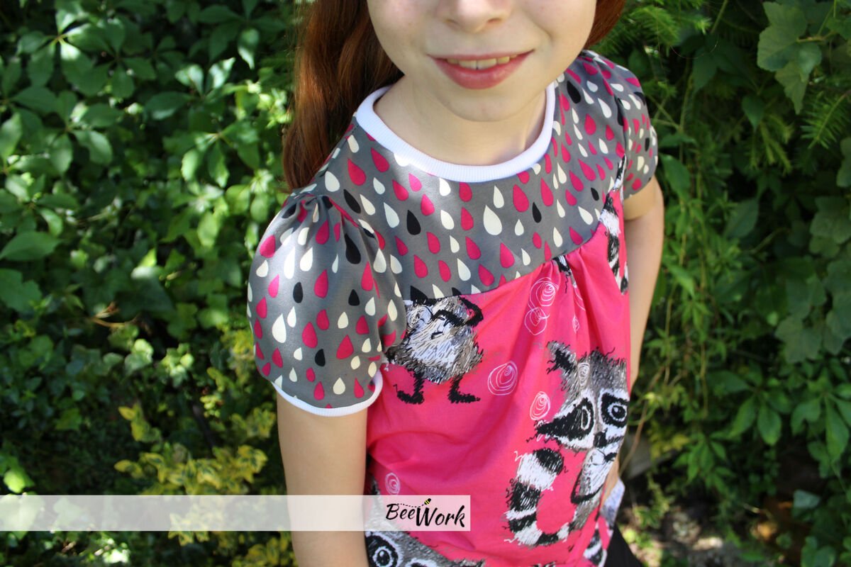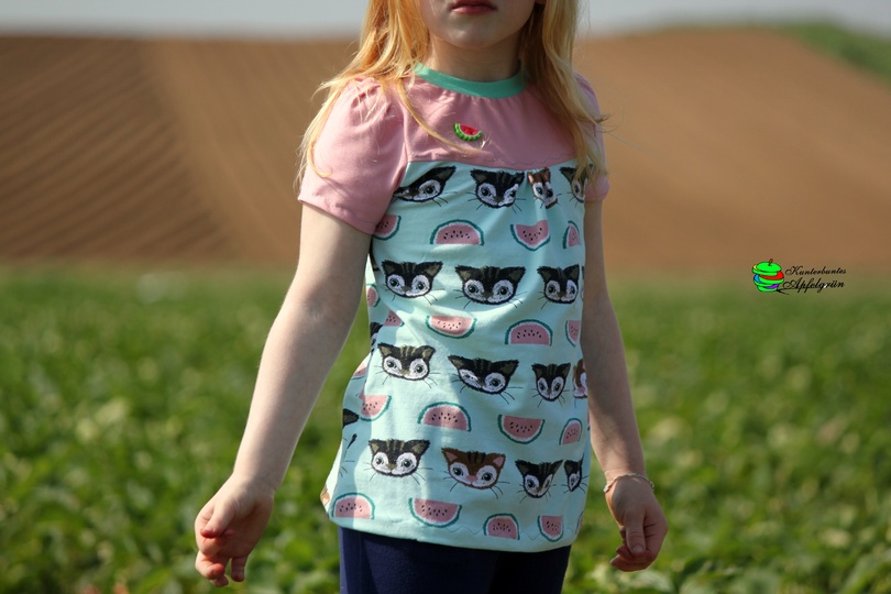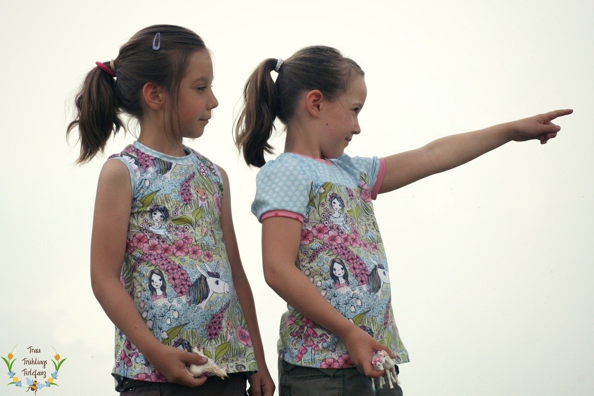 Das Schnittmuster Shirt to go ist für dehnbare Materialien konzipiert. Hervorragend eignet sich dafür Jersey und dünner Sommersweat. Es ist schmal geschnitten und in den Größen 98 bis 164 gradiert und für schmal bis normal gebaute Mädchen geeignet. Das Shirt liegt im Brustbereich eng an, aber umspielt leicht die Hüftpartie. Die Teilung kann für das Vorder-, sowie auch für das Rückteil gemacht werden. Das Ebook besitzt noch ein Extra-Schnittmuster für ein gerafftes Vorderteil, somit kann das Shirt to go mit, aber auch ohne der Raffung im Vorderteil genäht werden. Das Shirt besitzt leicht geraffte kurze, wie lange Puffärmel. Es ist auch so konzipiert, dass die Ärmel komplett weggelassen werden und nur mit einem Bündchenabschluss versehen werden können.