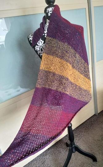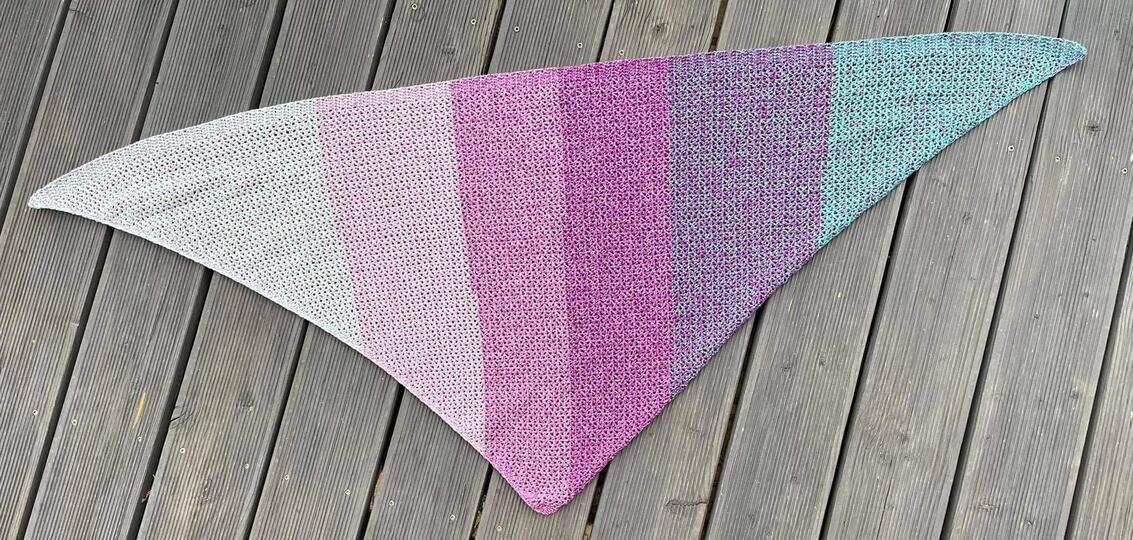 Das Tuch Freya besteht aus sich immer wiederholenden Reihen, die schnell im Kopf bleiben und, die ein schönes strukturiertes Gesamtmuster ergeben.
