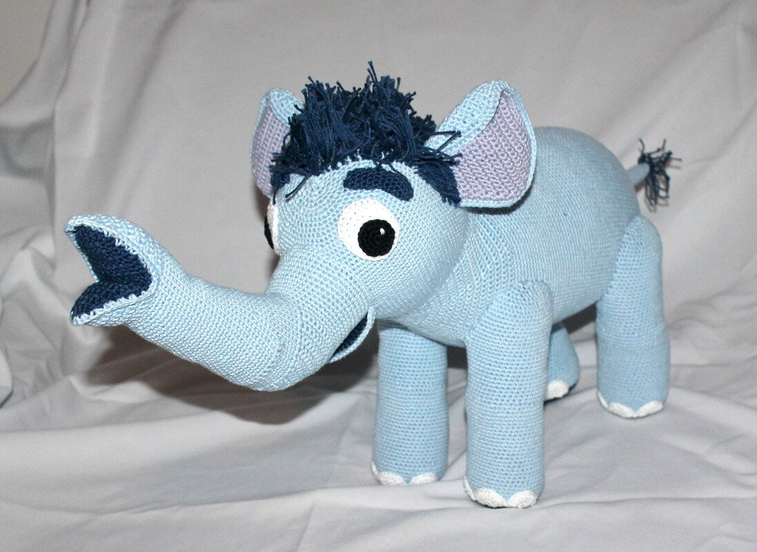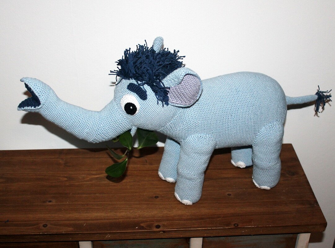 Der fertig gehäkelte Elefant wird knapp 70 cm lang und 30 cm hoch.