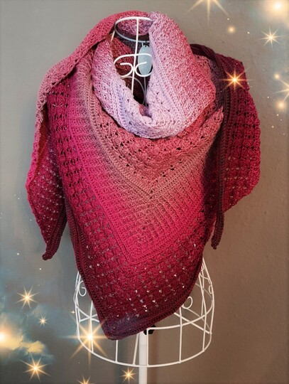 Das Tuch kann in 2 Versionen gehäkelt werden. Mit dem Kauf der Anleitung erhältst du die Anleitung für beide Versionen.