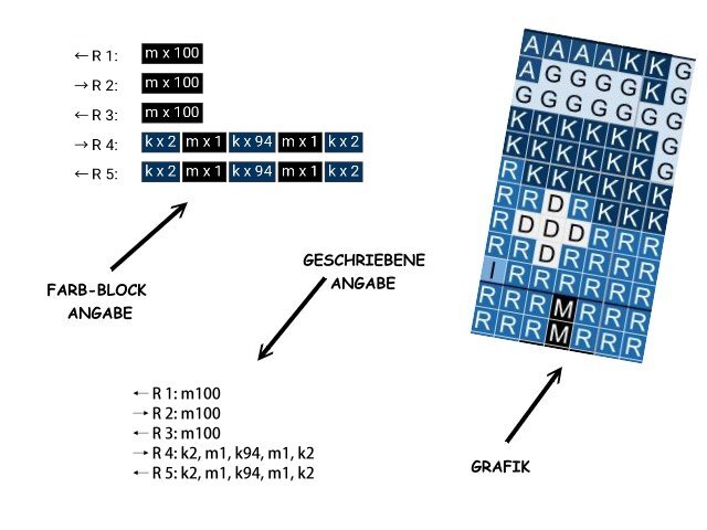 genaue Angaben mit Verbrauch & Farbnummern in der Anleitung