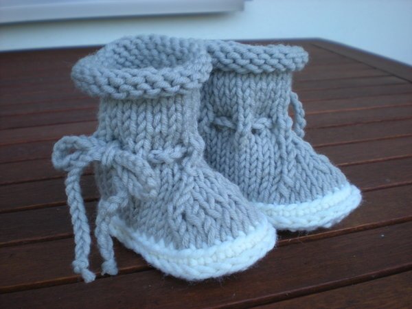 Diese Stiefelchen werden mit sehr dicker Wolle gearbeitet und sind daher ruck-zuck fertig.