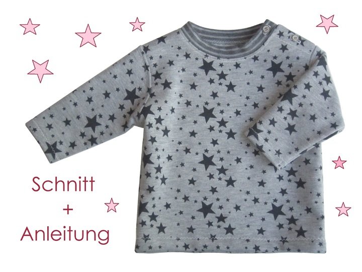 Schnittmuster für ein gemütliches Sweatshirt mit bequemer, gerader Passform, durch die Öffnung leicht über den Kopf zu ziehen, daher optimal für Babys geeignet. Das Modell hat ein Bündchen am Halsausschnitt und einen Verschluss auf der linken Schulter, den Sie je nach Geduld mit Knöpfen + Knopflöchern oder einfach mit Druckern versehen können. In der Anleitung ist beides erklärt.