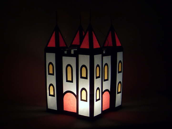 Die Laterne ist schnell und einfach zu basteln, nur das Ausschneiden der vielen Fenster nimmt etwas Zeit in Anspruch.
