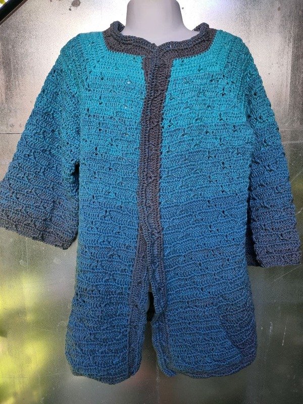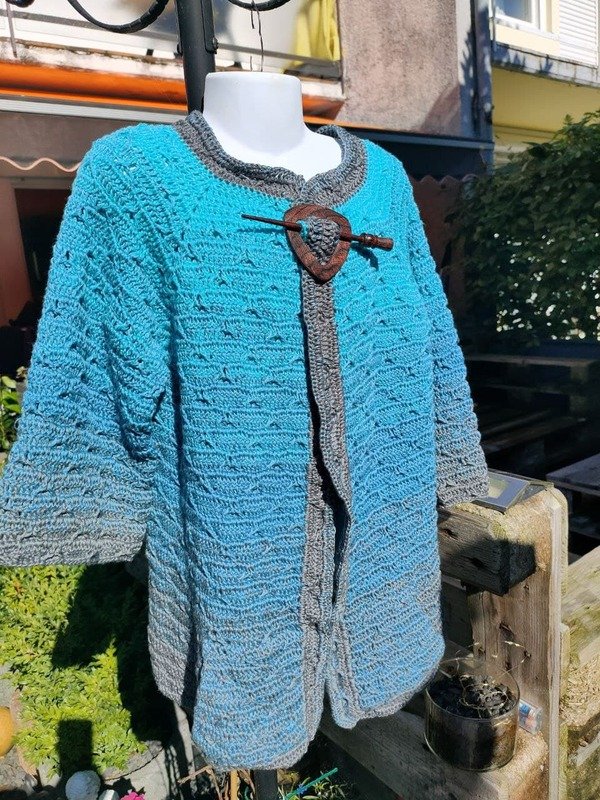 Beim vorgestellten Produkt handelt es sich NICHT um das fertig gehäkelte Kleidungsstück, sondern um eine Anleitung in Schriftform mit Häkelschrift, um dieses Kleidungsstück selbst zu häkeln.