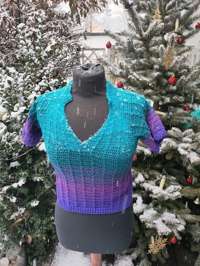 Beim vorgestellten Produkt handelt es sich NICHT um das fertig gehäkelte Kleidungsstück, sondern um eine Anleitung in Schriftform mit Häkelschrift, um dieses Kleidungsstück selbst zu häkeln.