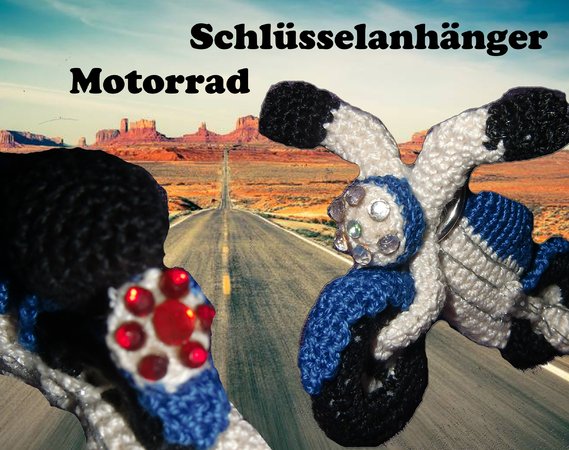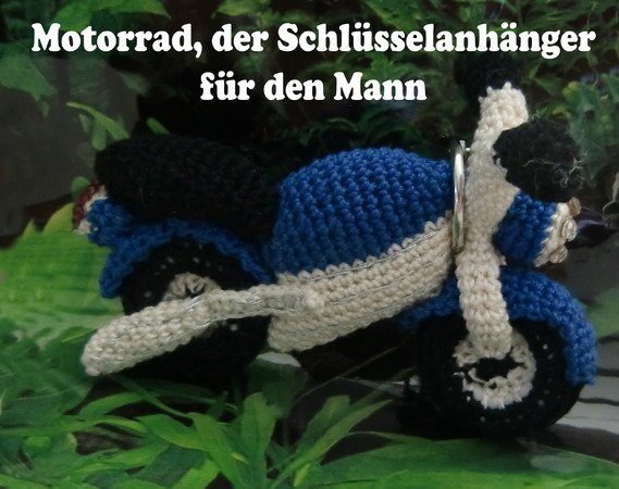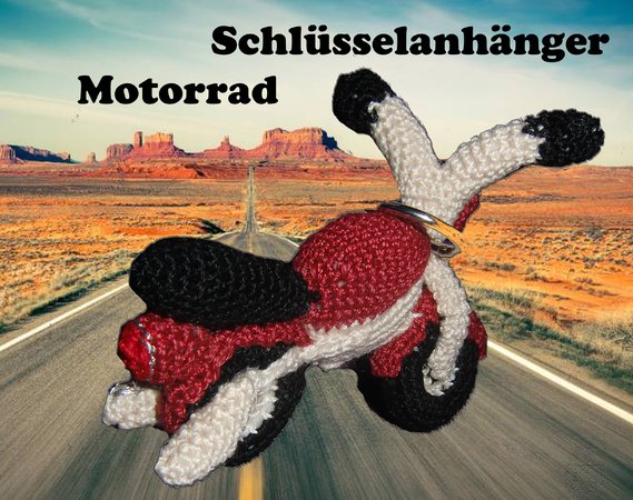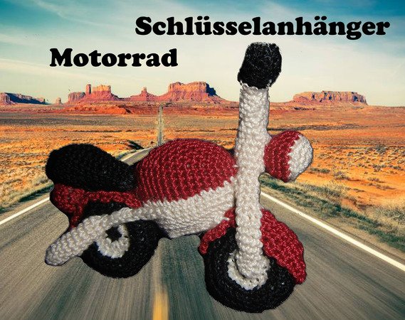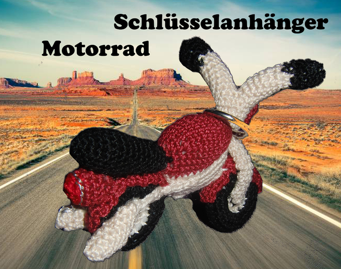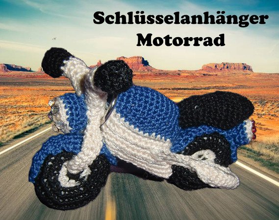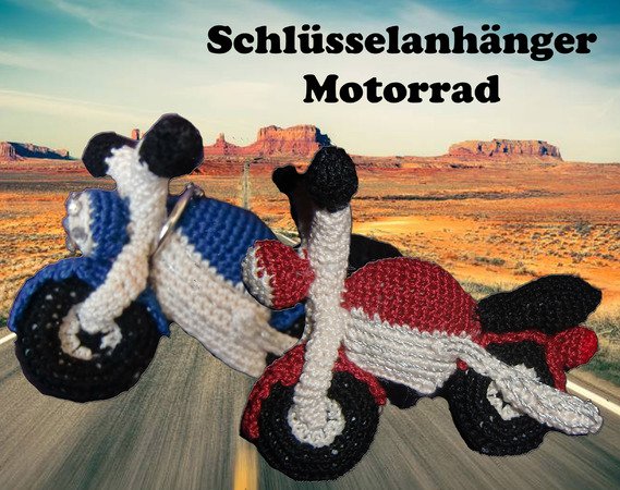 Sie kaufen hier die Häkelanleitung für den Schlüsselanhänger Motorrad,